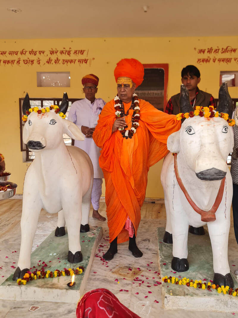 Jairampuri Goshala stands as a sanctuary built out of compassion and dedication for cows, brought to life by the visionary efforts of Shree Shree 108 Shree Heerapuri Ji Maharaj(Thanapati Kashi). Aimed at providing a haven for cows that are abandoned, injured, or have suffered accidents, this initiative is a testament to Nimana ji’s commitment to animal welfare. Thanks to his dedication, Jairampuri Goshala has inaugurated the largest cow treatment facility in Rajasthan. Furthermore, under Jairampuri Goshala’s guidance, the Ganga Cow-Promotion Center was established during the auspicious celebration of Gopashtami, embracing the ambitious vision of transforming every village into a Gaugram, a village dedicated to the welfare of cows.